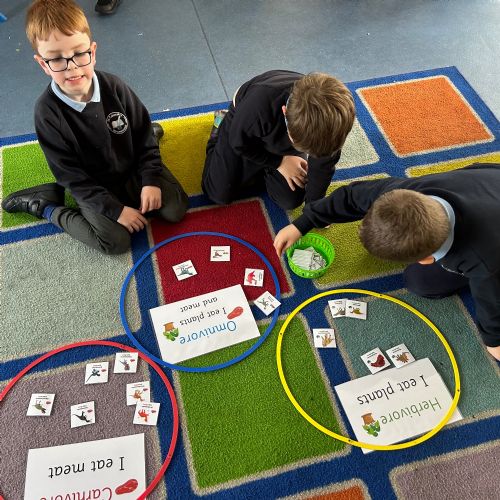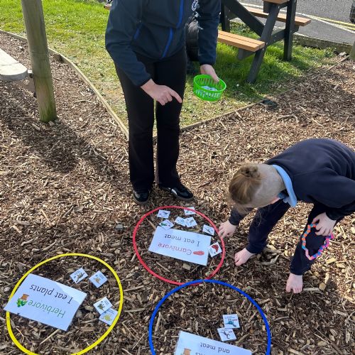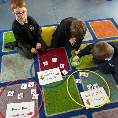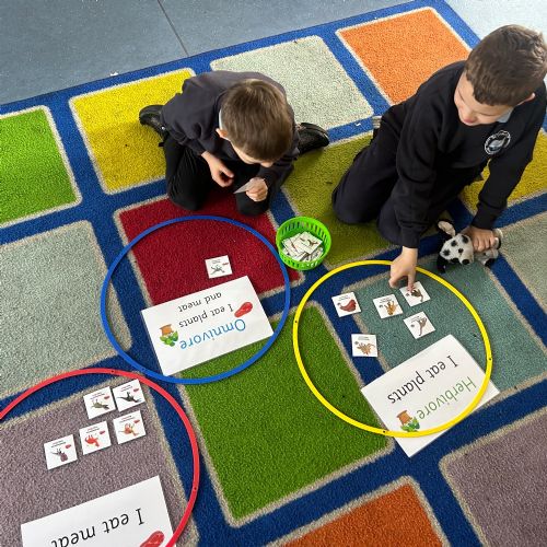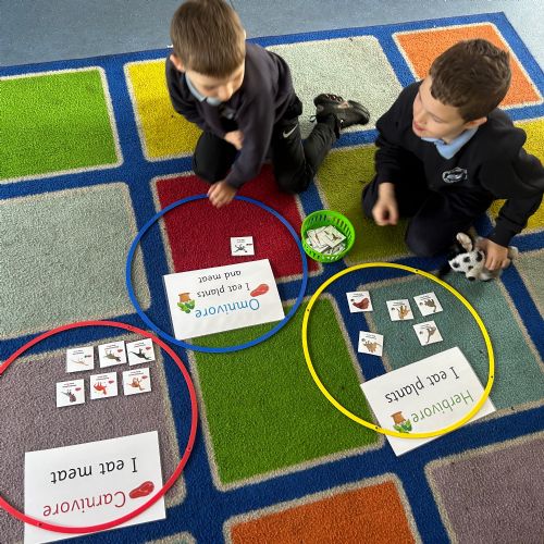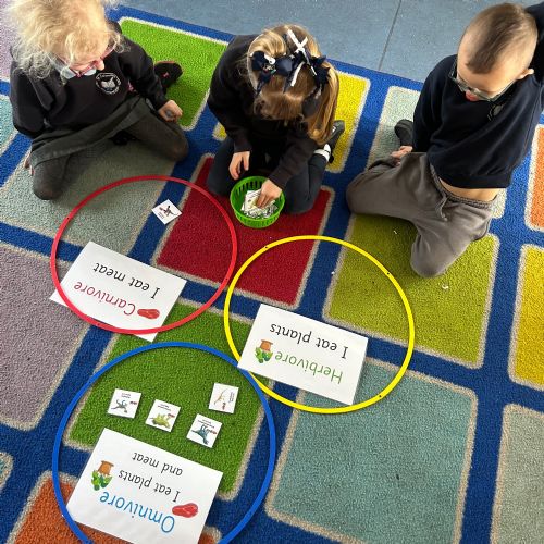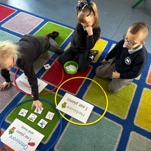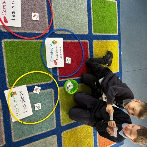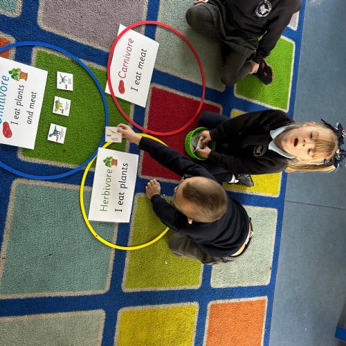 We took a look at the gs dinosaurs used to eat, and explored the terms Carnivore, Herbivore and Omnivore! We used pictures to help us sort the dinosaurs to show what they would have eaten,