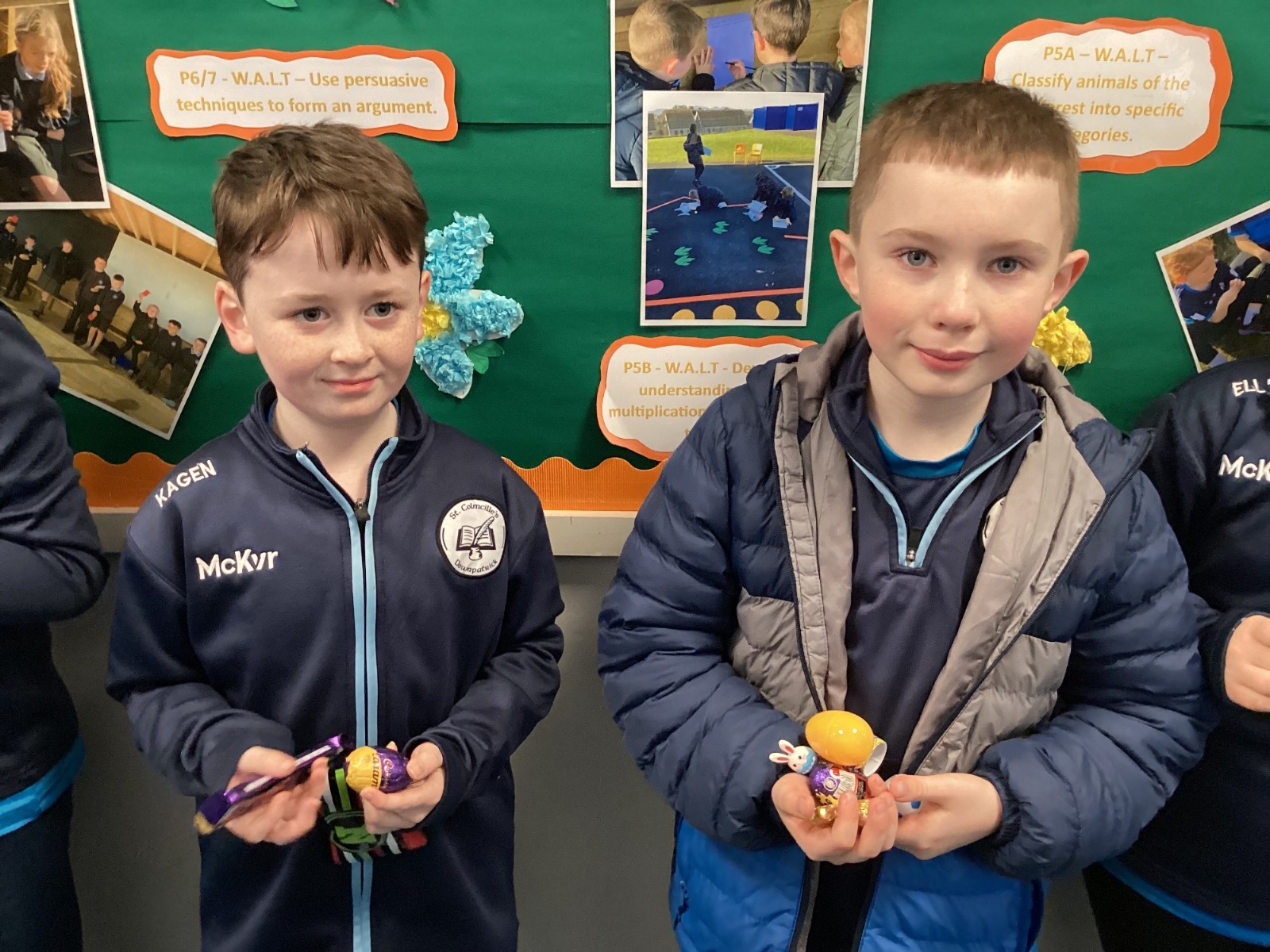 P5A enjoying some Easter goodies from the P7 tuck shop! 🐰🐣