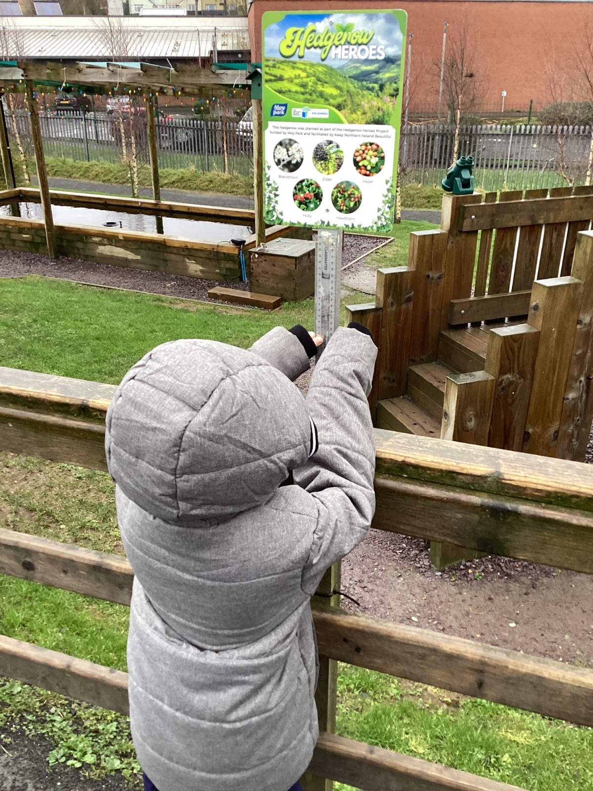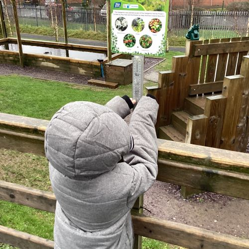 Using a ruler, the children measured a variety of natural materials during outdoor learning. They carefully compared lengths and sizes, showing curiosity and focus as they explored items such as sticks, leaves, and stones. The children talked about their observations and used simple mathematical language, helping them to develop an understanding of measurement while enjoying hands-on experiences in the natural environment.