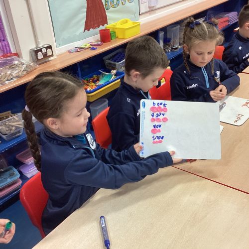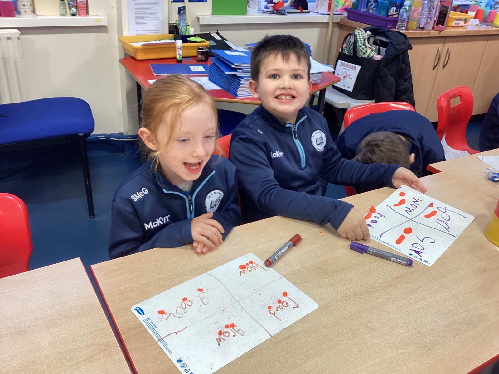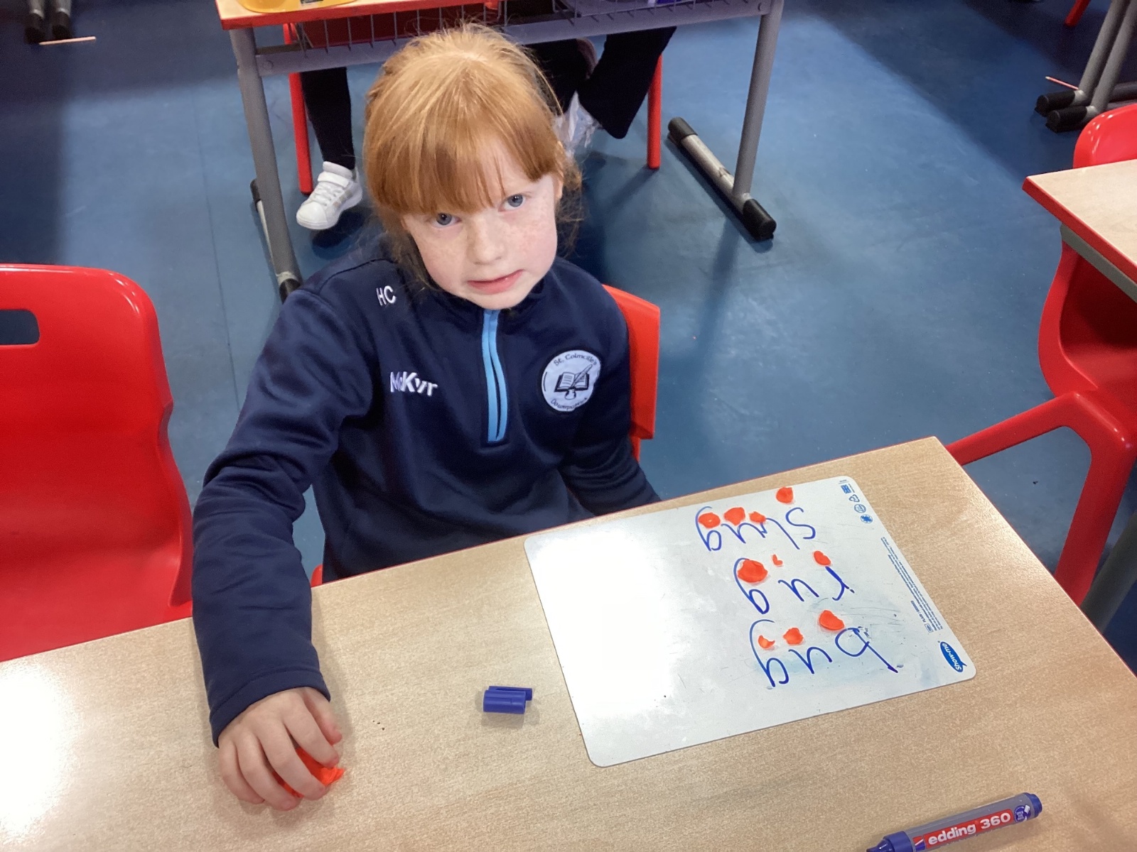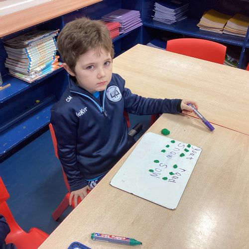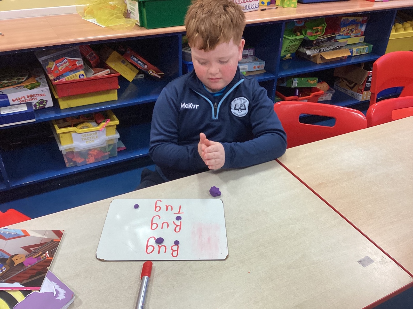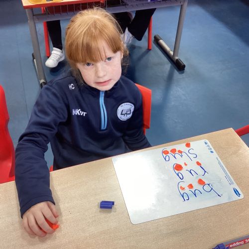 The children practiced their spelling words this week by taking part in a fun playdough splat activity. As they sounded out each phoneme in a word, they splatted the playdough, helping them to break the words down into individual sounds. This hands-on approach supported the children’s phonics development, strengthened sound–letter recognition, and made spelling practice engaging and enjoyable.
