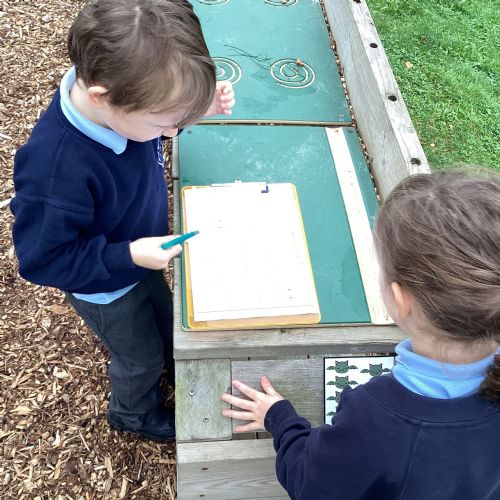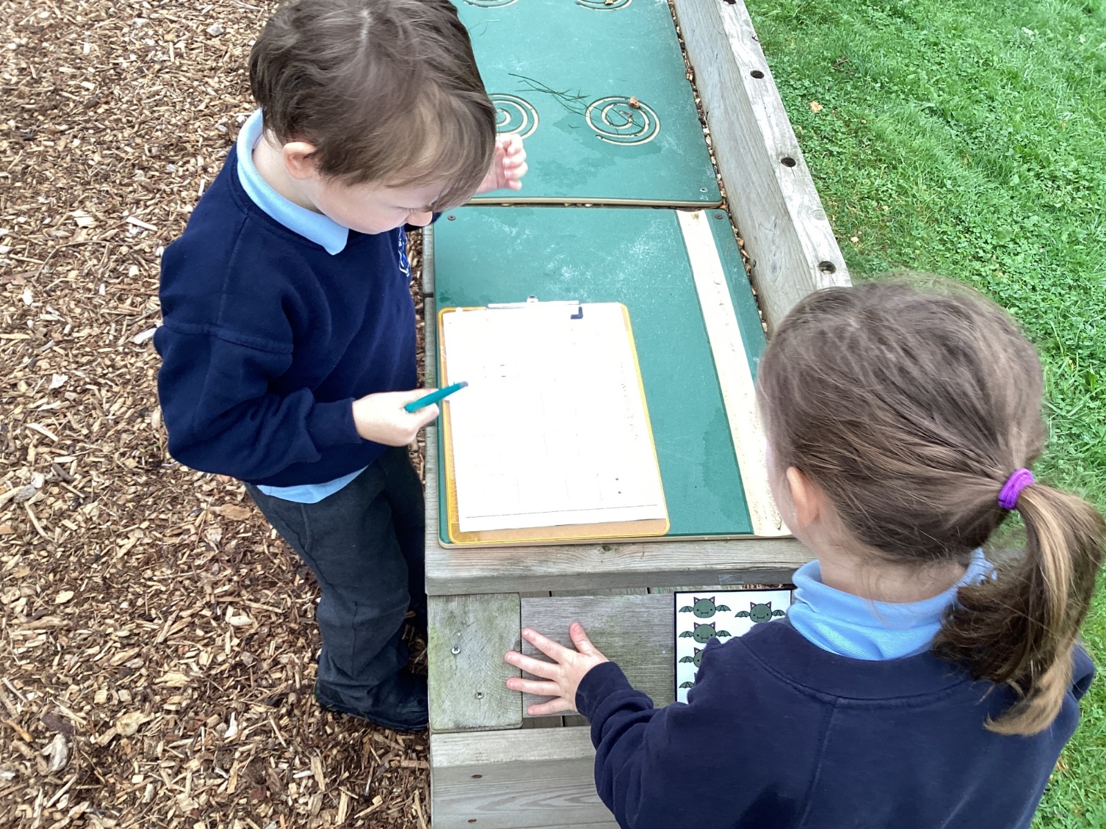 The children had a fantastic time taking part in a ‘Write the Room’ activity in the Rainbow Garden. They carefully counted the objects displayed around the space and recorded the matching numbers using correct number formation. This active learning experience helped to reinforce their counting skills in a fun and engaging outdoor setting.