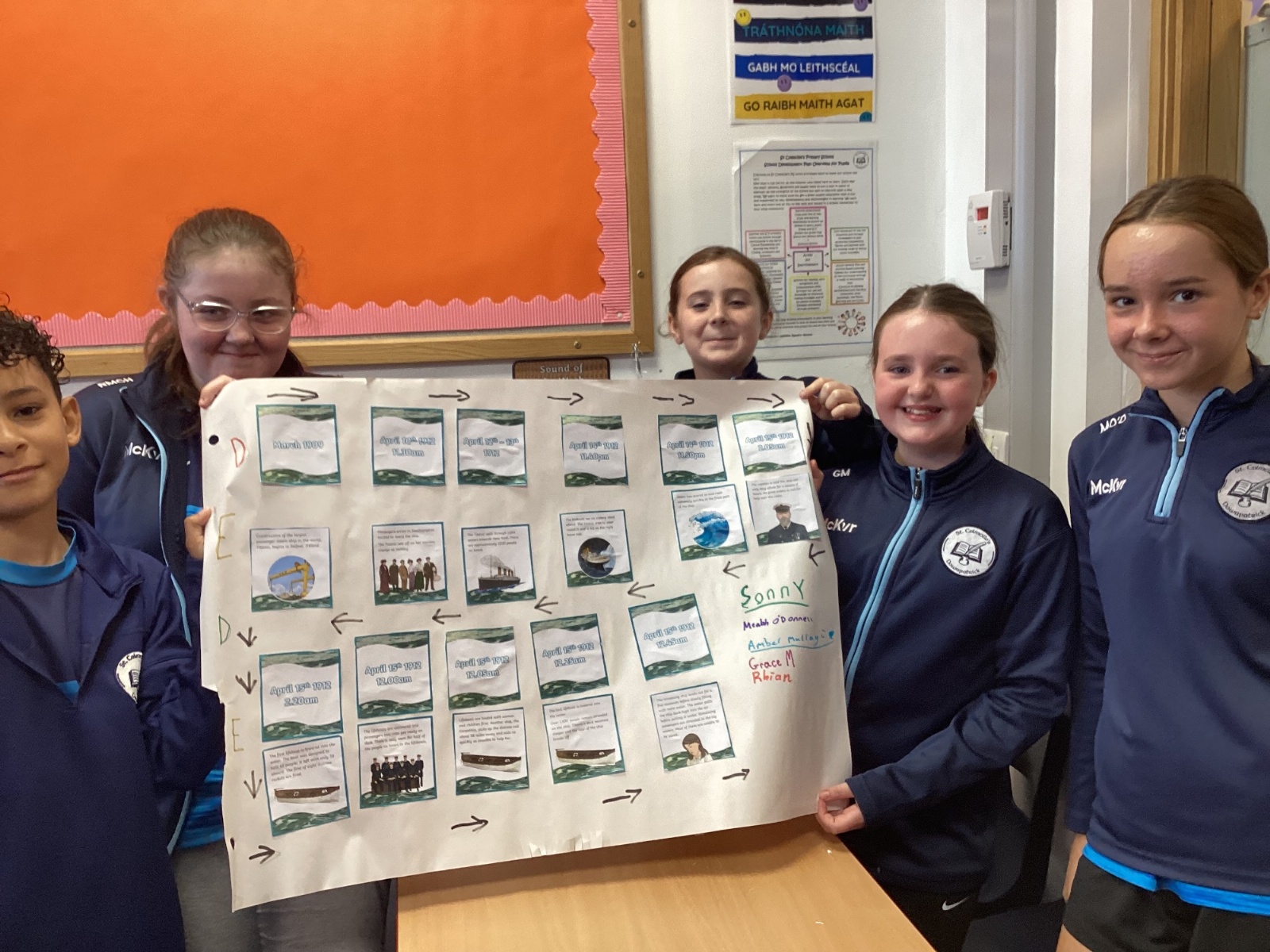 P7B have been exploring the key events in the history of the Titanic in more detail, from the moment construction started in Belfast in March 1909, until the moment the ship collided with an iceberg on the night of April 14th 1912, ultimately leading to the tragic sinking in the early hours of April 15th. The boys and girls have put these events onto a timeline to display in our classroom.